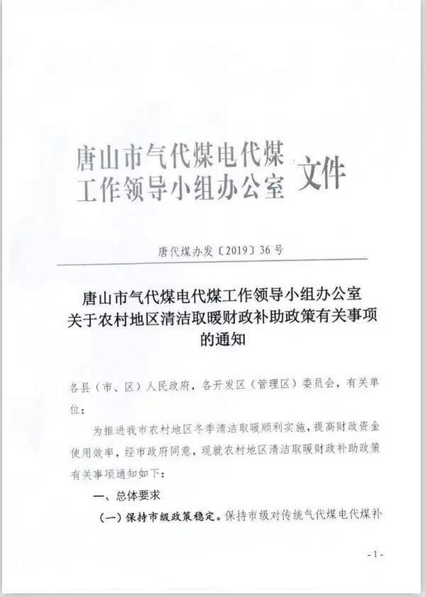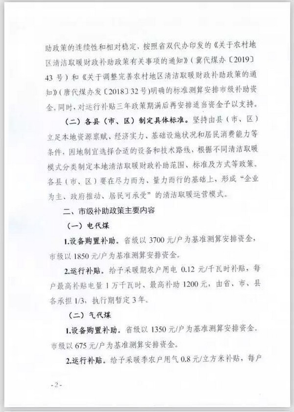 定了!唐山農村地區清潔取暖財政補助政策