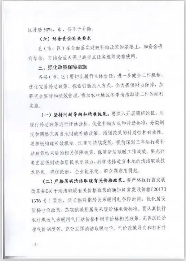 2.運行補貼。給予采暖期農戶用電0.12元/千瓦·時補貼,每戶高補貼電量1萬千瓦·時、高補助1200元,由省、市、縣各承擔1/3,執行期暫定3年。